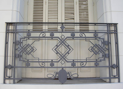 Decorations designed to frame windows and doors are part and parcel of the vocabulary of  residential architecture in Montevideo.  The adornments and details that make a house stand out in the streetscape were lavishly applied by architects working in the Parque Rodo neighbourhood during the late19th and early 20th centuries.  Wrought iron railings, mouldings, cornices, friezes, corbels and lintels offered surfaces where the cake's icing could be laid on in thick and elaborate flourishes.